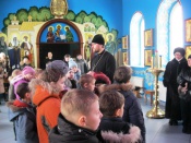 3 марта в Покровском храме города Назарово состоялась экскурсия для детей из реабилитационного центра. Настоятель иерей Роман Нещерет провел ребят и их родителей по всему храму, закончив экскурсию на колокольне, где прозвучали традиционные