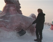 Фигуры делает местная умелица Лариса Петрова. В деревню она переехала несколько лет назад. В этом году решила украсить двор снежными фигурами.