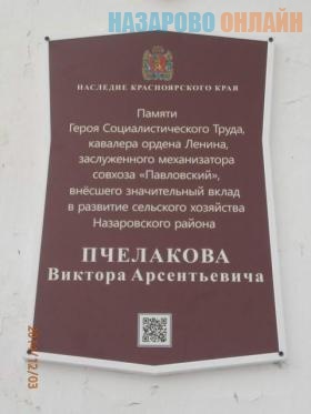 В деревне Сютик Назаровского района 3 декабря открыта мемориальная доска Герою Социалистического труда, заслуженному механизатору совхоза «Павловский» Виктору Пчелакову.