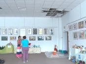 В них собирают воду, которая бежит прямо с потолка. Каждый раз после дождя  сотрудники музейно -выставочного центра вооружаются ведрами и тряпками. Мягкая кровля дает течь  уже более 10 лет.