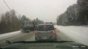 Обстановка на региональных трассах очень непростая. Наблюдается гололед, из-за сильного снегопада снижена видимость. Тяжелее легковым автомобилям, из-за вихря от впереди идущих грузовиков видимость практически нулевая.