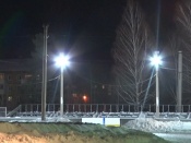 Подрядчик произвел замену старого электрооборудования на современные новые осветительные приборы. Светодиодные прожекторы установили на столбы.