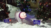 На территории офиса на Чехова, 7А второй год подряд загорается праздничная иллюминация.Как и в прошлом году здесь поселился полярный медведь. На страницах многих назаровцев в социальных сетях уже появились снимки у ёлки с этой надувной фигурой.