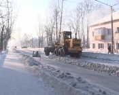 Впервые дорожники начали вывозить снег с улиц города Назарово в январе