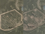 Хорошо видно, как изменилось состояние территории военной части. Напомним, 5 августа на территории части у деревни Каменка горели склады боеприпасов. Население ближайших сел и деревень эвакуировали. А в пятницу 9 августа взрывы