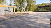 Никто не предусмотрел отсыпку территории перед сценой в березовой роще. Согласно проекту, подрядчик должен установить скамейки из габионов просто на голую землю.