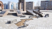 Подрядчик продолжает устранять недочеты на мемориале – перекладывать брусчатку, закреплять скамейки, качели и стенды. Объем работ значительный. Брусчатка провалилась на большей части территории.