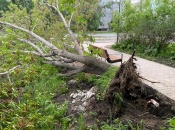 Сильный ветер в городе Назарово вырвал с корнем несколько деревьев