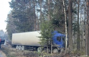 На подъезде к городу грузовик съехал с трассы и врезался в дерево
