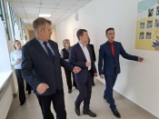 Рабочий визит Сергея Ерёмина начался с осмотра школы №2.  Здесь  полным ходом идет капитальный ремонт. Выполнено чуть больше половины работ. Уже к концу декабря по плану их должны завершить. Ведь уже в январе следующего года школа должна принять
