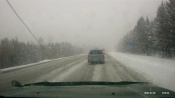 Обстановка на региональных трассах очень непростая. Наблюдается гололед, из-за сильного снегопада снижена видимость. Тяжелее легковым автомобилям, из-за вихря от впереди идущих грузовиков видимость практически нулевая. Местами движение на трассах перекрывают на непродолжительное время. В районе Козульки водители стояли в километровой пробке, пока грузовые автомобили «шлифовали» на небольшом подъеме. Некоторые большегрузы не смогли справиться со сложностями дороги, вдоль трассы несколько грузовиков слетели с дороги в кювет.