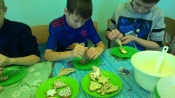 А накануне в поселке Степное в классе Воскресной школы дети под руководством преподавателей расписывали рождественские пряники, которые принято дарить в праздник. Издревле православные изготавливали пряники из ржаной муки и украшали их, чтобы поделиться радостью вести о рождении Спасителя с окружающими. Возрождение данной традиции занимает важное место в становлении нового прихода в поселке Степное. Дети имеют возможность приобщиться к исконным традициям православных праздников.
