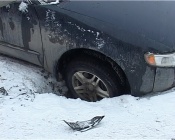 Позже в ловушку на дороге попала автоледи. Девушка двигалась на иномарке между домами по улице Арбузова. Переднее колесо её машины провалилось в яму. Накануне коммунальщики, чтобы добраться до крышки люка, откопали снег, но ничем не обозначили образовавшуюся на дороге яму. Автомобиль теперь нуждается в серьезном ремонте.