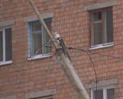 Свет пропал накануне из-за повреждения сети. По неизвестной причине серьезно пострадала опора линий электропередач. Это произошло в районе дома №12 по улице Советская. Столб сильно наклонился, разбит фонарь, разорваны провода. Никаких дорожных происшествий в этом районе не зафиксировано, но без освещения осталась улица Советская от пересечения с Карла Маркса до перекрестка с Кузнечной.
