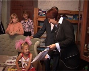 Побывали гости и в многодетной семье Вершинских. Татьяна Михайловна воспитывает 6 детей. Дочь Виктория в этом году пойдет в первый класс, чтобы получать пятерки гости подарили Вике все, что необходимо первокласснице.