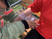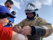 Сосредоточенность, сила и скорость - это то, что необходимо пожарным, как профессионалам, так и добровольцам. Именно они сегодня демонстрируют свои навыки ликвидаций чрезвычайных ситуаций. Жюри- профессиональные огнеборцы. Всего побороться за звание лучшего добровольного пожарного решили 9 жителей района. По условиям соревнований необходимо было на время надеть комплект пожарной одежды, оказать помощь пострадавшему и подать пожарный рукав. Поболеть за своих мужей и отцов пришли супруги и дети.