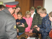 Они посетили Межмуниципальный отдел МВД России «Назаровский». Мероприятие прошло в рамках пропагандисткой акции «Эстафета подвига», а также в рамках повышения доверия населения к органам внутренних дел. Детям продемонстрировали оружие, состоящее на вооружение ОВД. Посетили гости и дежурную часть МО МВД России «Назаровский». Оперативный дежурный рассказал, какие функции выполняет данное подразделение, какие технические средства помогают держать на контроле обстановку на улицах города.