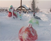 Фигуры делает местная умелица Лариса Петрова. В деревню она переехала несколько лет назад. В этом году решила украсить двор снежными фигурами.