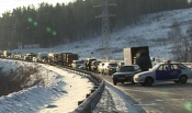 На трассе вблизи Назарово образовалась километровая автомобильная пробка