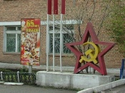 Рядом с учреждением установлен праздничный баннер, посвященный Победе в Великой Отечественной войне. Правда, вместе 69-ой  годовщины на плакате написано «65 лет Победы». Как выяснилось, никакой ошибки нет. Дело в том, что баннер расположен у здания